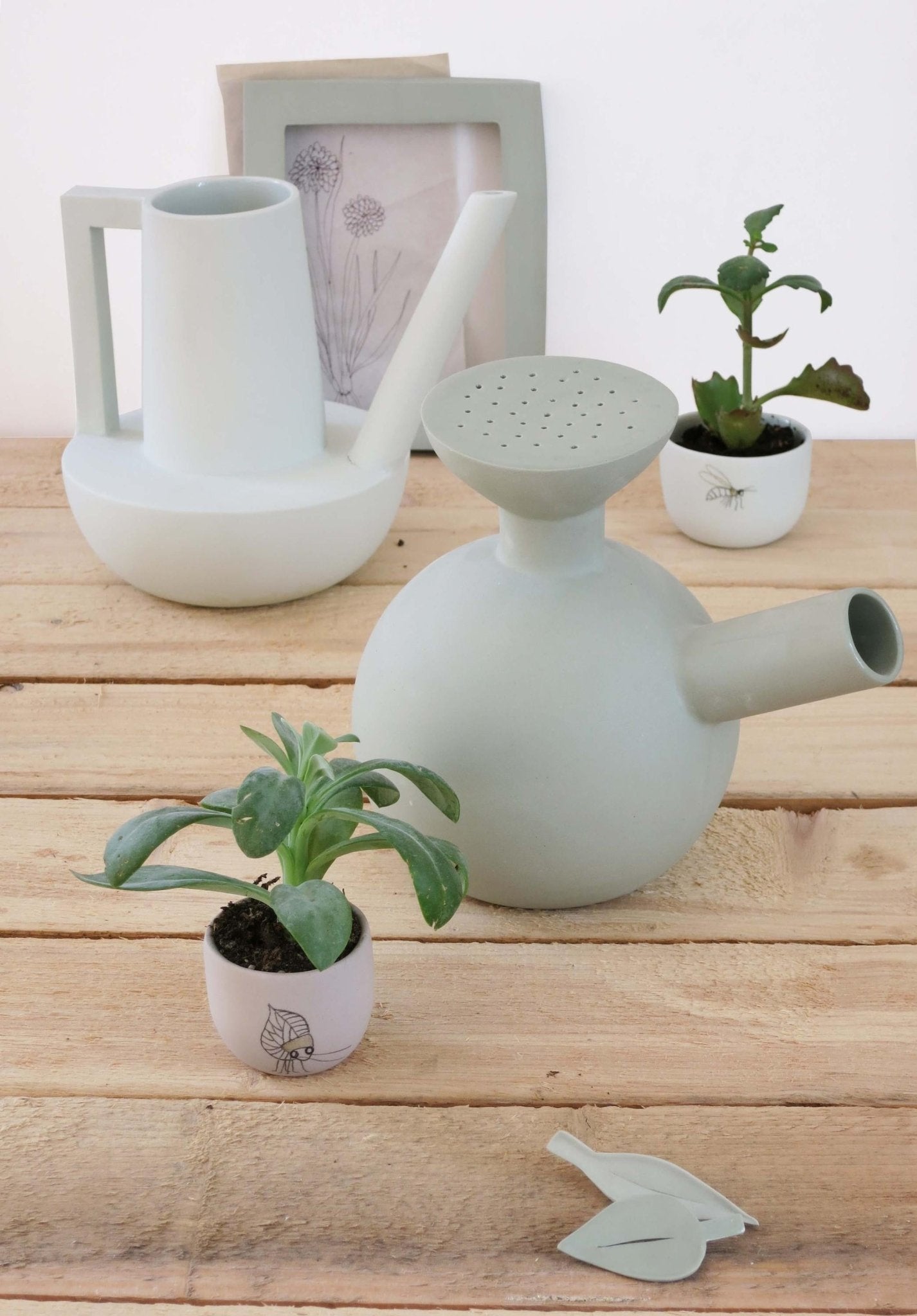 Elke van den Berg staat bekend om haar prachtige keramische werk, uitblinkend in vorm en kleur. Hier in het zonnetje de twee porselein gieters, zo mooi ontworpen, dat ze gewoon bij je planten in he...