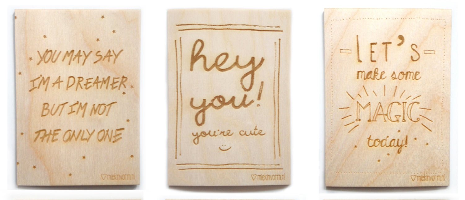 Beeldredacteur, illustrator, vormgeefster, stylist, etaleur, marathon loopster… Annemiek van der Hoek van MIEKinvorm is het allemaal. Deze prachtige houten kaarten met oppeppende en motiverende quo...