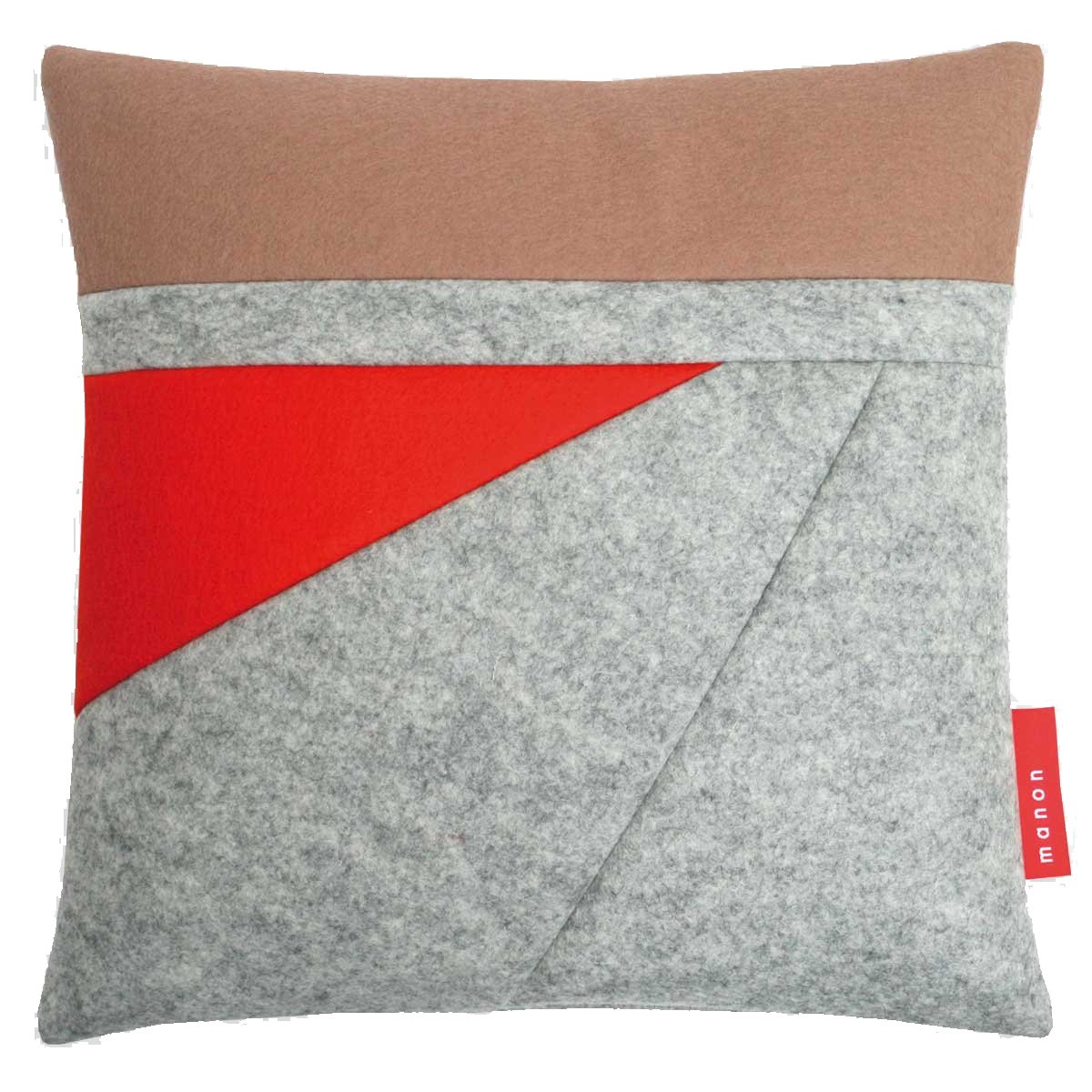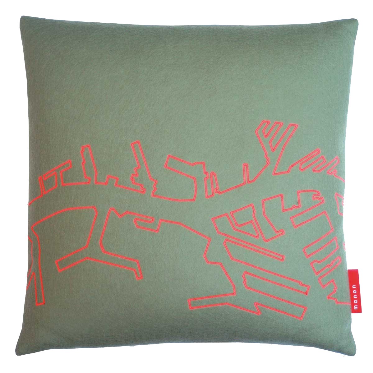 Deze strakke vilten kussens van Manon Garritsen zijn een combinatie van stedenbouwkundig design en een warm hart voor de stad Rotterdam. Vilten kussens Rotterdam aan de Maas De Maas, slagader van R...